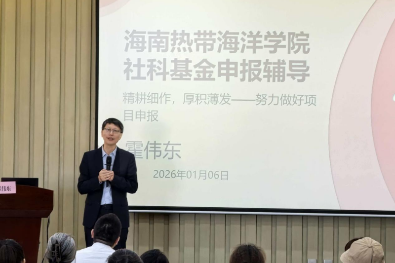 1月6日下午,由三亚市社科界联合会和海南热带海洋学院联合主办的“天涯讲坛”第七期学术讲座,在海南热带海洋学院人文楼103报告厅顺利举行,辽宁大学二级教授霍伟东应邀作题为“精耕细作,厚积薄发——努力做好项目申报”的专题报告。校党委常委、副校长唐旭主持报告会。